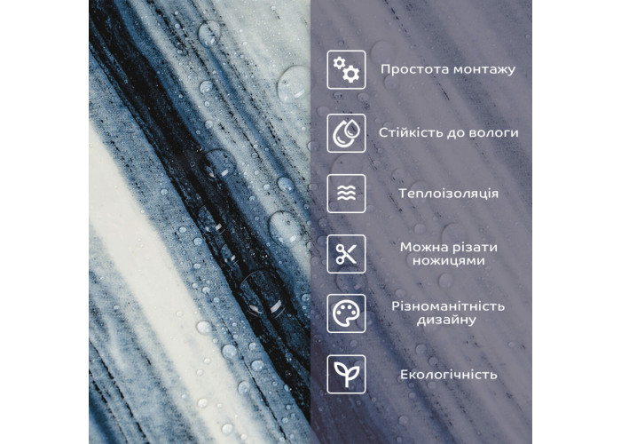 • 2. Стійкість до вологи: матеріал стійкий до впливу вологи та пари, а також до появи плісняви, що робить його придатним для використання у приміщеннях з високою вологістю, таких як ванни та кухні. Плитка підходить для створення фартуха кухні, можна клеїти біля плити на відстані не менше ніж 20-25 см;