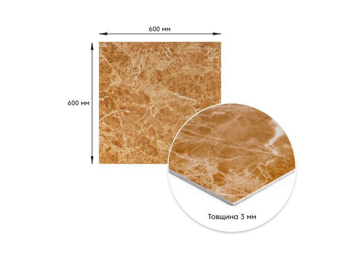 Розмір ПВХ плити - 600ммх600мм. Товщина - 3 мм. Вага листа - 2,4кг