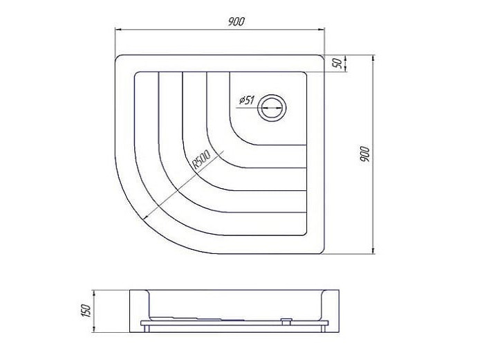 Акриловий кутовий напівкруглий душовий піддон CASANO 900x900