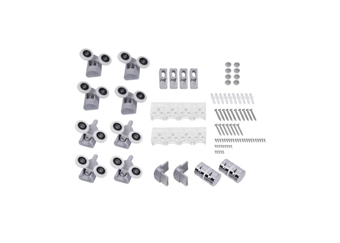 Подвійні ролики, ручки, комплект кріплень, глухе скло, скляні двері, профіль.