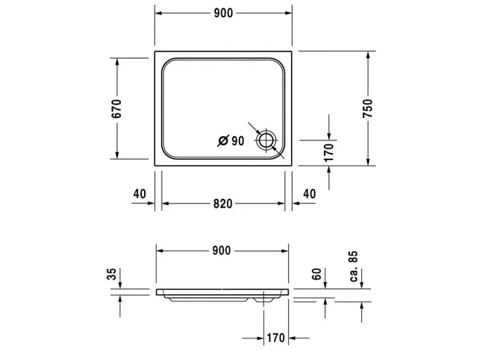 Піддон DURAVIT D-CODE 720104000000000, 90х75