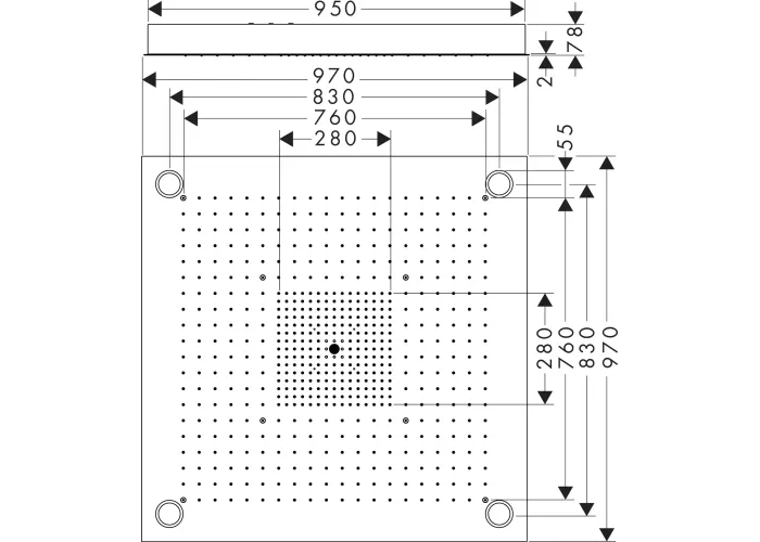 розмір головки душа: 970 x 970 мм;