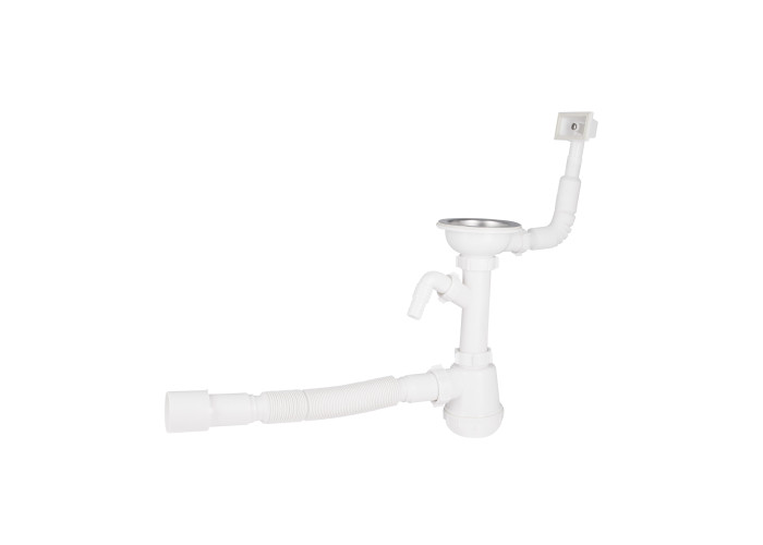 Сифон для кухонної мийки Lidz LK05 виготовлений із якісного пластику білого кольору. При необхідності резервуар сифона може відкручуватися для чищення. Гофрований вихід дає можливість змінювати довжину та кут труби. Завдяки комунікації для переливу можна уникнути переповнення кухонної раковини водою. Мокрий гідрозатвор забезпечить надійний захист від неприємних запахів із каналізації.
