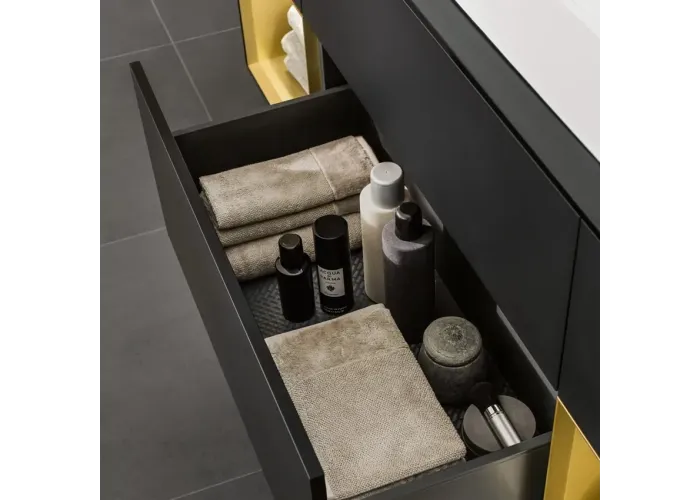 Тумба під раковину VILLEROY & BOCH Finion (G741HFPD) з 4 висувними відділеннями з протиковзким килимком і з LED-підсвіткою (2x LED / 2,3Вт. 2x LED / 4,2Вт. A-A ++. 2700K нейтральний білий / 6480K білий денне світло).;