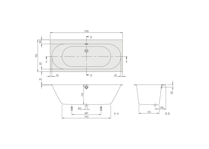 Ванна кварилова Villeroy & Boch Oberon 2.0 170 x75 (UBQ170OBR2DV-01) має гармонійний дизайн, плавні лінії і вузькі краю.;