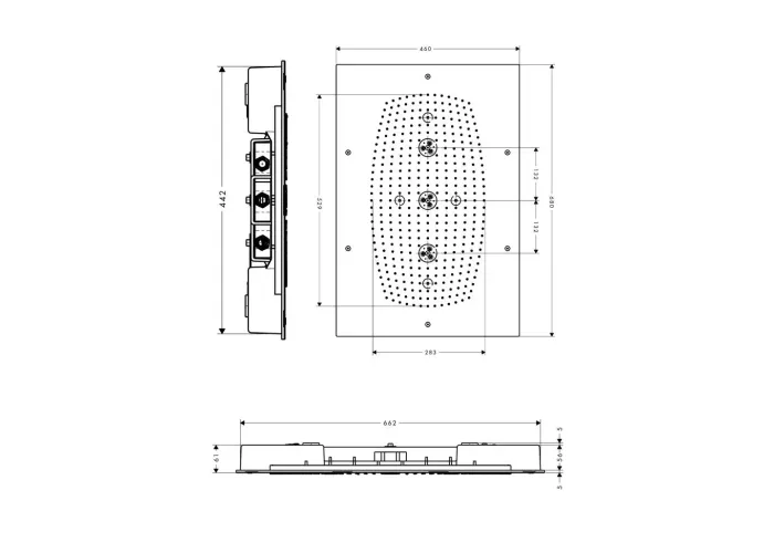 • розмір душової лійки: 680 x 460 мм;