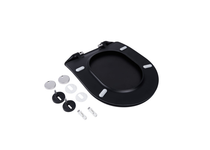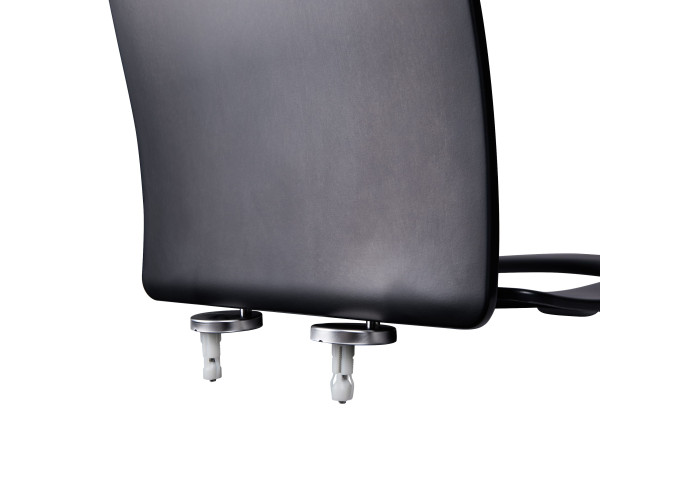 Сидіння для унітазу Qtap (Robin, Scorpio) з мікроліфтом Slim QT99U184UF450MB виготовлено з дюропласта, до складу якого входить спеціальний компонент, що запобігає зростанню і розмноженню бактерій, тому експлуатація унітазу буде гігієнічною та безпечною. Сидіння виконано у чорному кольорі з матовою поверхнею, має зручну форму. Завдяки швидкоз'ємним кріпленням встановити сидіння можна без використання будь-яких інструментів.