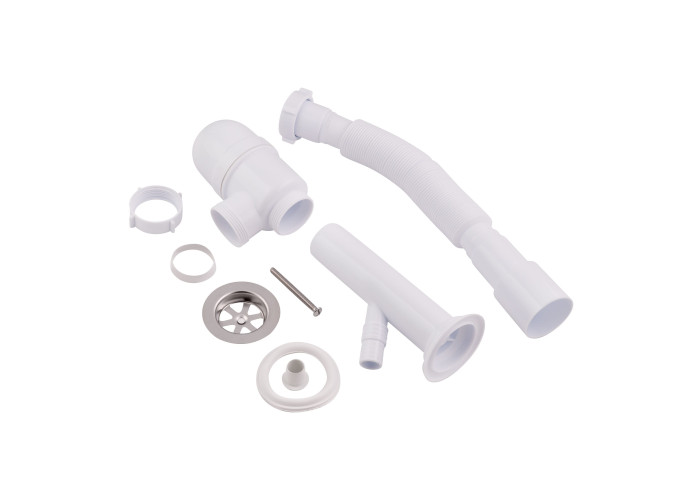 Сифон для раковини Lidz LU03 має вигляд колби, виготовлений із пластику білого кольору. Виріб має гладку внутрішню поверхню, що перешкоджає накопиченню бруду на стінках. Резервуар колби легко знімається, тому його очищення від осілих твердих частинок не складе великих клопотів. Гофрований вихід дає можливість змінювати довжину та кут труби. Цей сифон має окремий висновок для підключення побутових приладів, що використовують воду.