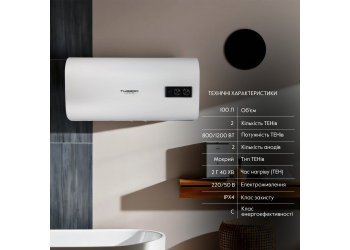 Водонагрівач Thermo Alliance 100 л, мокрий ТЕН 2 кВт (0,8 + 1,2) DT100H20GPD призначений для горизонтального монтажу з нижнім підведенням труб. Такий бойлер — ідеальне рішення для приміщень з обмеженим простором для встановлення, а також для розміщення в нішах і шафах. Потужні ТЕНи (800 і 1200 Вт) швидко нагрівають воду та оптимально підтримують її температуру. Захист від корозії забезпечують два магнієві аноди та емалеве покриття внутрішнього бака. Зручна панель керування оснащена дисплеєм індикації температури води. Товщина внутрішнього бака — 2 мм.