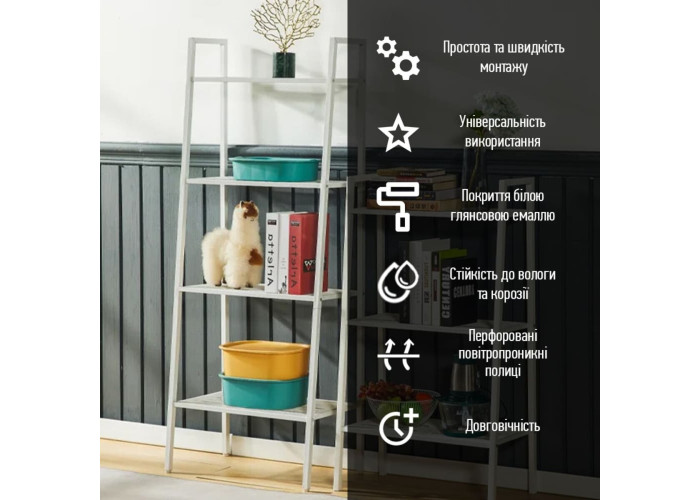 Стелаж-етажерка чотириярусний з металу 60х35х148см Білий SW-00002104
