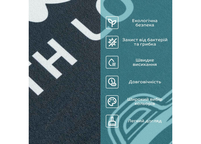 • Легкий догляд: килимки легко чистяться від пилу та волосся за допомогою простого струшування або промивання водою. Для видалення жирних плям можна використовувати мийний засіб.