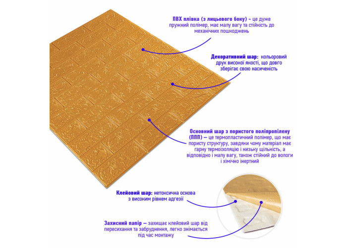 3. Легкість монтажу: наявність клейового шару дозволяє встановити панелі без необхідності застосування додаткових матеріалів.