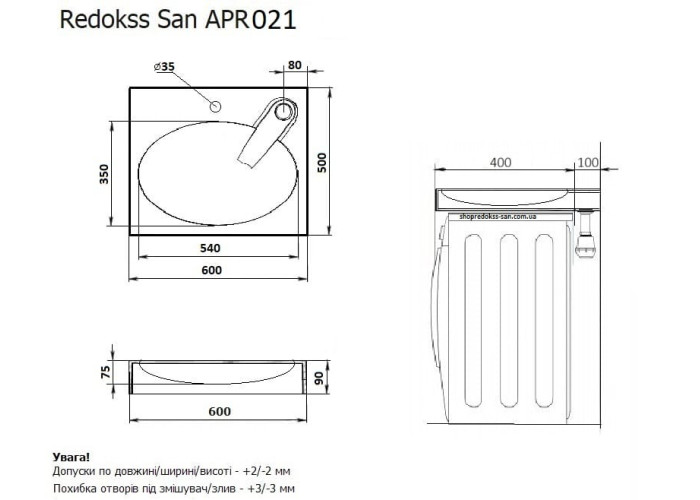 Умивальник на пральну машину Redokss San OCEAN 60x50cм