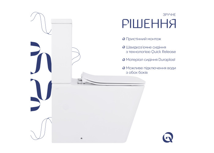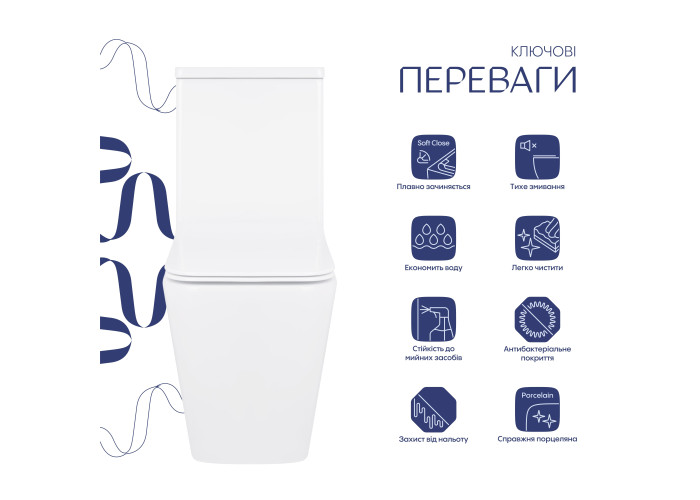 Унітаз-компакт Qtap Crow безобідковий з сідінням Soft-close QT05222170W