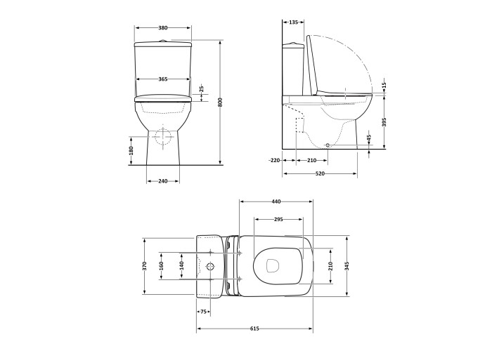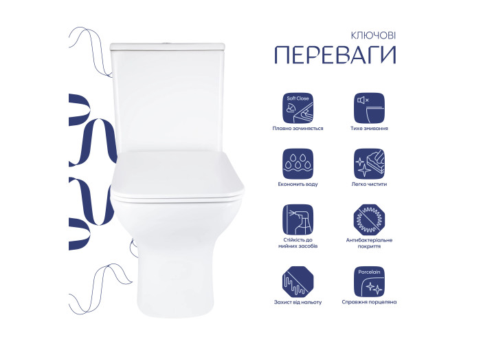 Унітаз: кераміка. Сидіння для унітазу: дюропласт. Бачок: кераміка