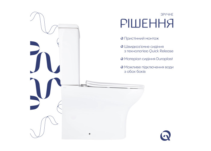 Підлоговий унітаз Qtap Aries QT03228302W - ідеальне поєднання сучасного дизайну та функціональності. Завдяки безободковій технології Rimless забезпечується більш гігієнічний і легкий догляд за виробом. Сидіння Slim Duroplast з функціями Soft-close (плавне закриття) і Quickrelease (швидке зняття для очищення) додає комфорту і зручності. Унітаз має горизонтальний випуск, нижнє підведення води та економічний бачок із двома режимами зливу (3/7.15 літрів), що сприяє економії води. Глянцева біла поверхня і стильний дизайн роблять цей унітаз відмінним вибором для будь-якої ванної кімнати.