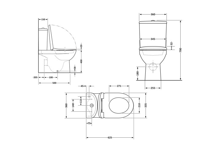 Унітаз, бачок, зливний/наливний механізм, сидіння, кріплення.