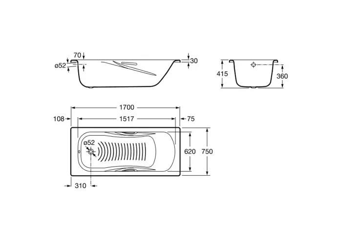Ванна сталева ROCA PRINCESS 170x75 A220270001