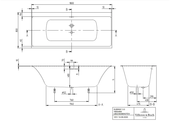 Особливості ванни VILLEROY & BOCH Subway 3.0 180x80 см White Alpin (UBQ180SBW2TDV-01);