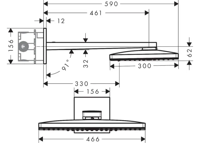 • складається з: верхній душ, тримач для верхнього душу, накладка;