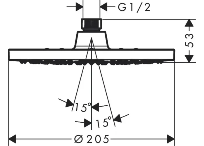 • розмір душової лійки: 205 мм;