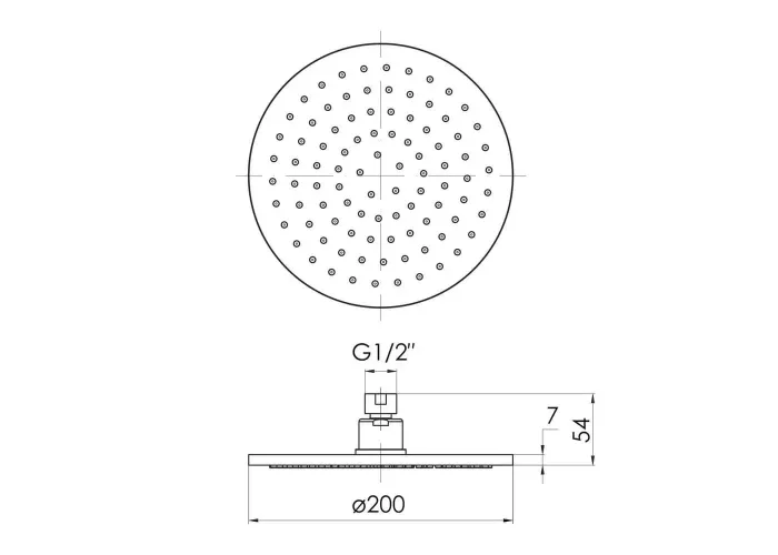 Діаметр лійки верхнього душа, мм 200
