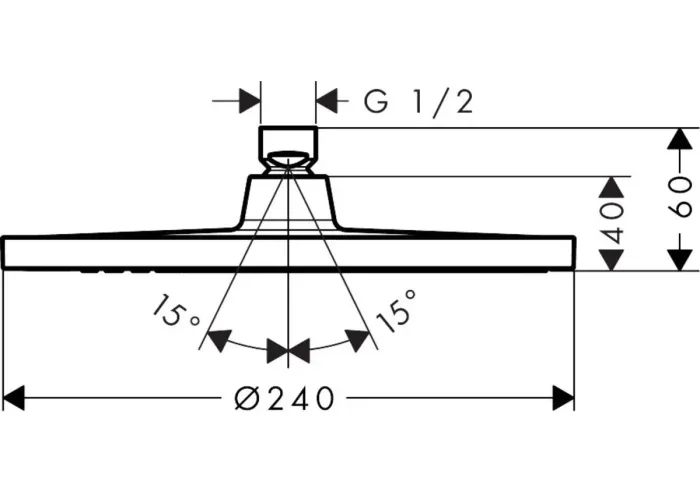• розмір душової лійки: 240 мм;