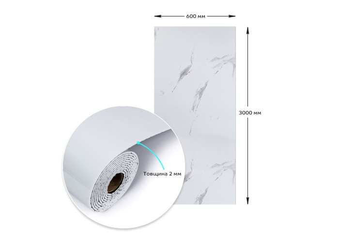 Самоклеюча вінілова плитка в рулоні 600х3000х2мм Білий повітряний мармур Глянсова SW-00001287