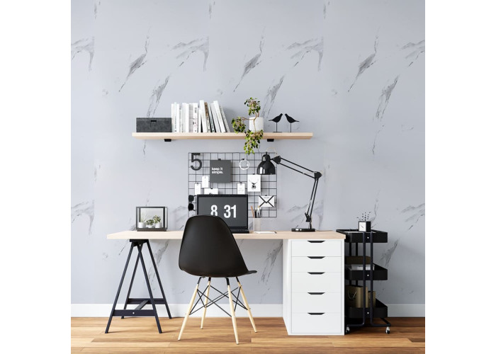 • Легка установка: шар, що самоклеїться, робить процес укладання швидким і простим, не вимагаючи додатково клею, інших матеріалів або фахівців. Матеріал укладається стик у стик, його можна різати ножицями чи монтажним ножем, між смугами не розходиться, не набухає та не деформується. Відсоток обрізу становить 1%, що є найкращим показником для настінних покриттів;