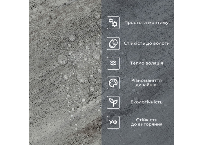 • Легкий догляд: вініл легко очищається і не вимагає спеціальних засобів для чищення.