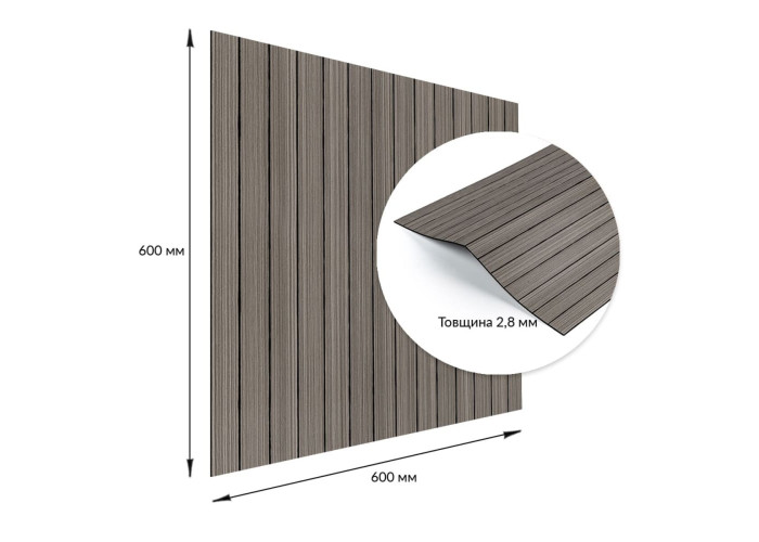 Фактура: рельєфна, імітація дерев'яної рейки. Поверхня матова.