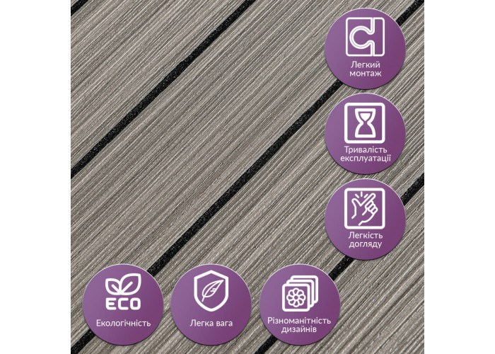 • Легкий догляд: Вінілові рейки легко миються, не вимагають спеціальних засобів для очищення і не вбирають бруд.