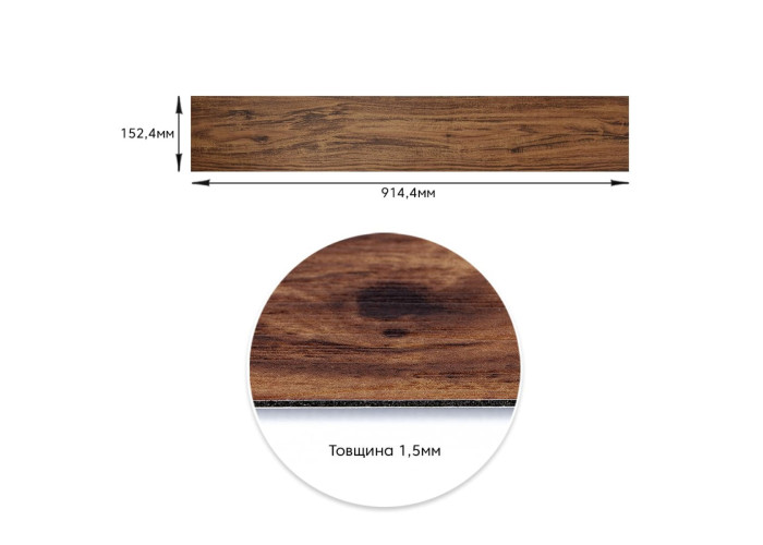 Самоклеюча вінілова плитка 152.4х914.4х1.5мм Темне дерево, ціна за 1 шт. (СВП-004) Матова SW-00000222