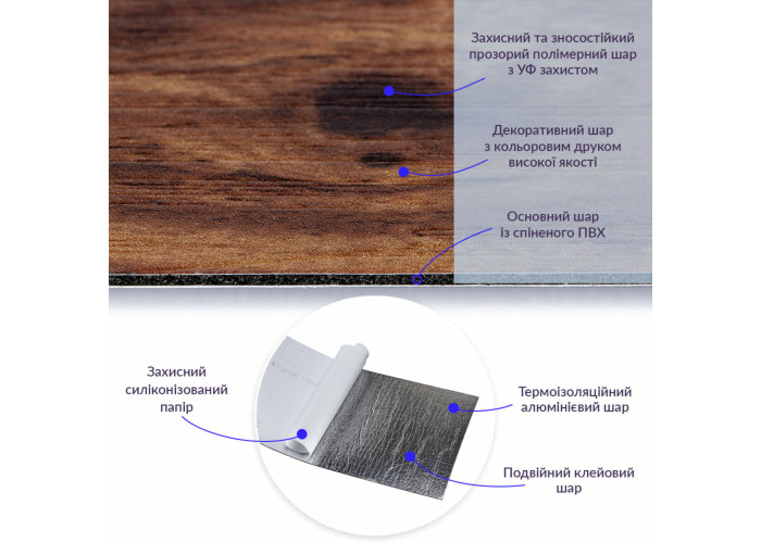 • Фольгований шар: основна властивість цього шару – відображення теплових хвиль, що дозволяє мінімізувати теплові втрати, тим самим покращити теплоізоляцію приміщення.