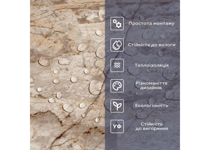 - Декоративний шар: плівка з кольоровим друком високої якості, яка повністю імітує фактуру природних матеріалів завдяки чіткому та деталізованому зображенню.
