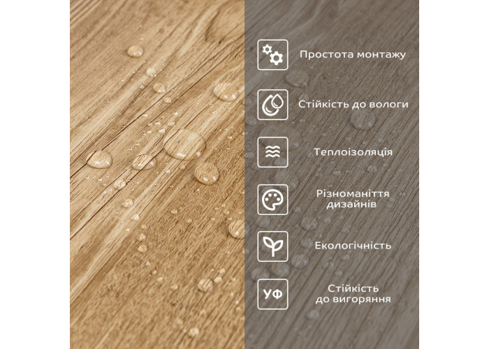 • Легкий догляд: вініл легко очищається і не вимагає спеціальних засобів для чищення.