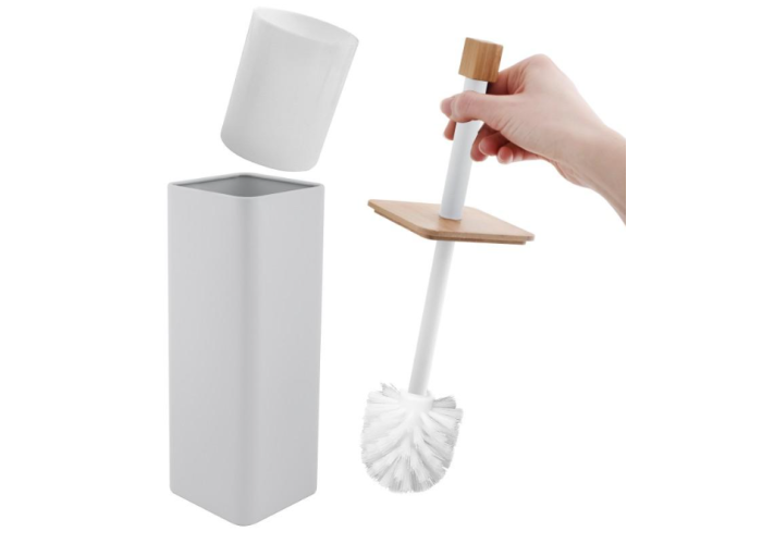 Туалетна щітка із високоякісної сталі пофарбована у білий матовий колір з елементами натурального бамбукового дерева.