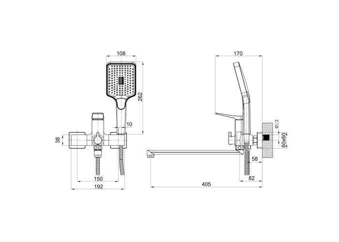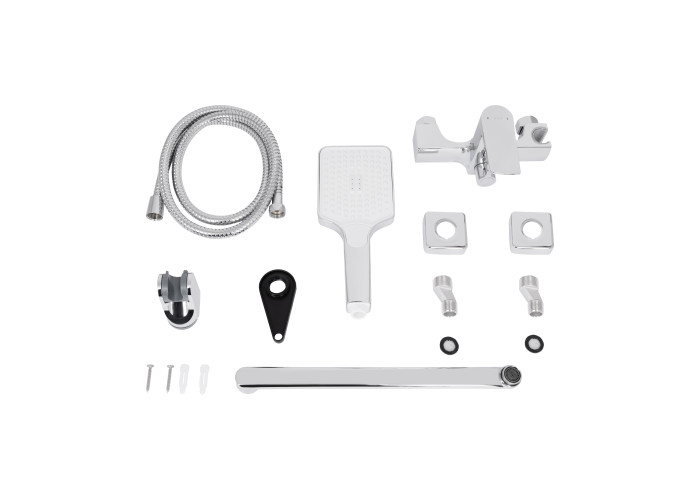 Змішувач, лійка для ручного душу, душовий шланг, кронштейн для ручного душу, кріплення.