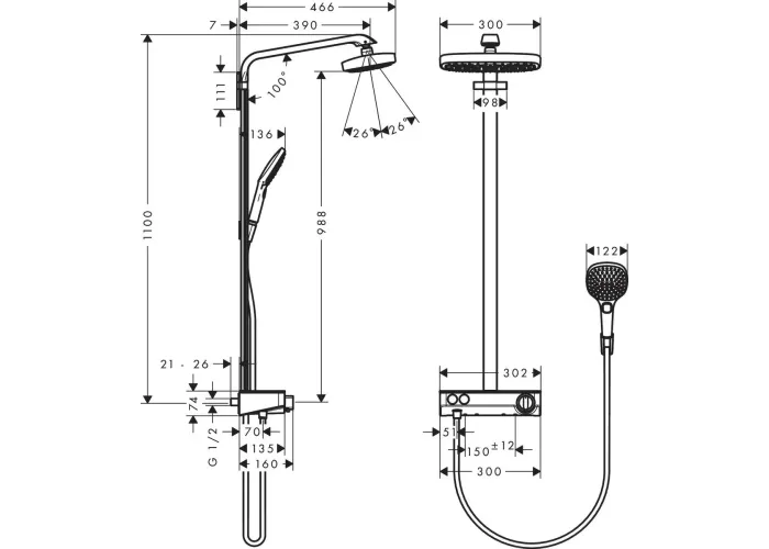 • складається з: верхній душ, ручний душ, термостат для душу, душовий шланг, тримач для душу;