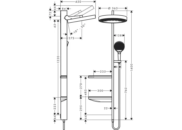• тримач для душу зі змінним кутом нахилу на 10-30 °;