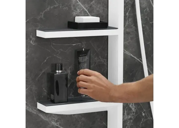 • складається з: верхній душ, ручний душ, тримач верхнього душу, шланг для душу, полички, штанга для душу;