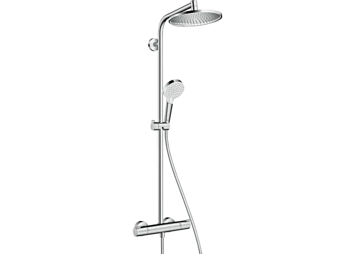 Душові системи з термостатом є обов'язковим компонентом обладнання ванної кімнати, як з ванною, так і з душовою кабіною. HANSGROHE пропонує широкий модельний ряд душових систем – душова система з термостатом та виливом для ванни, душова стійка з термостатом для душової кабіни, а також душові системи з великими лійками та лійками різних форм. Магазин сантехніки пропонує купити душову систему із термостатом HANSGROHE CROMETTA S 27267000 з доставкою по Україні. Також, вибрати та купити тропічний душ з термостатом HANSGROHE можна у магазинах у Києві, Львові та Одесі. Душові системи HANSGROHE оснащуються технологічними термостатичними картриджами з точним автоматичним регулюванням температури, які сумісні з більшістю водонагрівачів, у тому числі з газовими котлами.
