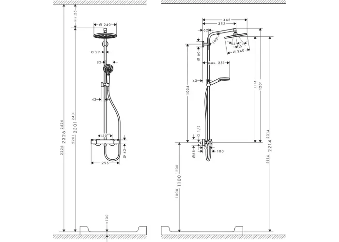 • складається з: верхній душ, ручний душ, термостат для душу, душовий шланг, повзунок, штанга для душу;