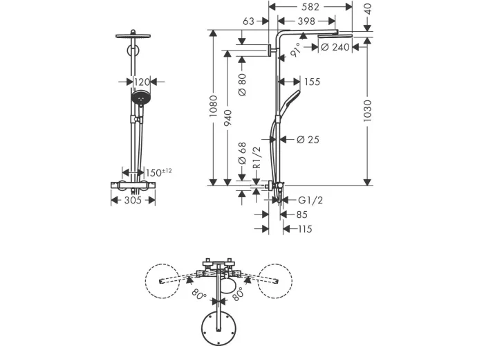 Душові системи з термостатом є обов'язковим компонентом обладнання ванної кімнати, як з ванною, так і з душовою кабіною. HANSGROHE пропонує широкий модельний ряд душових систем – душова система з термостатом та виливом для ванни, душова стійка з термостатом для душової кабіни, а також душові системи з великими лійками та лійками різних форм. Магазин сантехніки пропонує купити душову систему із термостатом HANSGROHE RAINDANCE SELECT S 27633670 з доставкою по Україні. Також, вибрати та купити тропічний душ з термостатом HANSGROHE можна у магазинах у Києві, Львові та Одесі. Душові системи HANSGROHE оснащуються технологічними термостатичними картриджами з точним автоматичним регулюванням температури, які сумісні з більшістю водонагрівачів, у тому числі з газовими котлами.