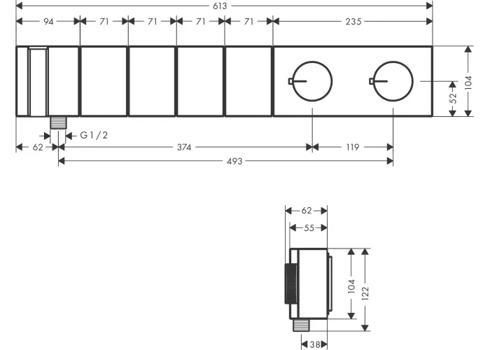 Термостат постачається з кнопками ручний душ, Waterfall, Rain large, Mono