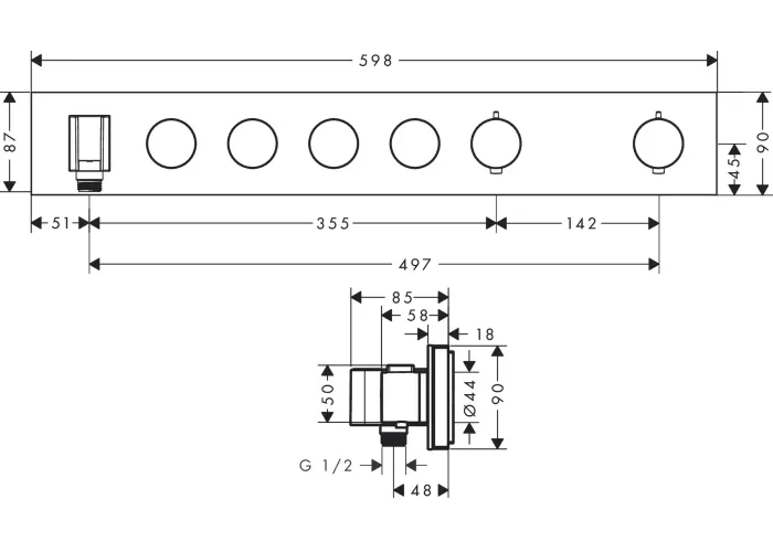 Модуль термостата AXOR SHOWER SOLUTIONS 18357340, Select 600/90, для 4 споживачів, прихованого монтажу, чорний
