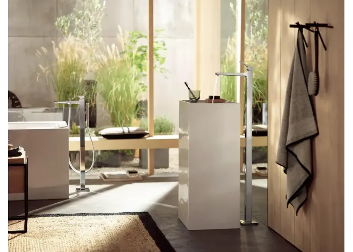 • складається з: одноважільний змішувач для ванни, підлоговий, ручний душ-паличка, душовий шланг, тримач для душу;